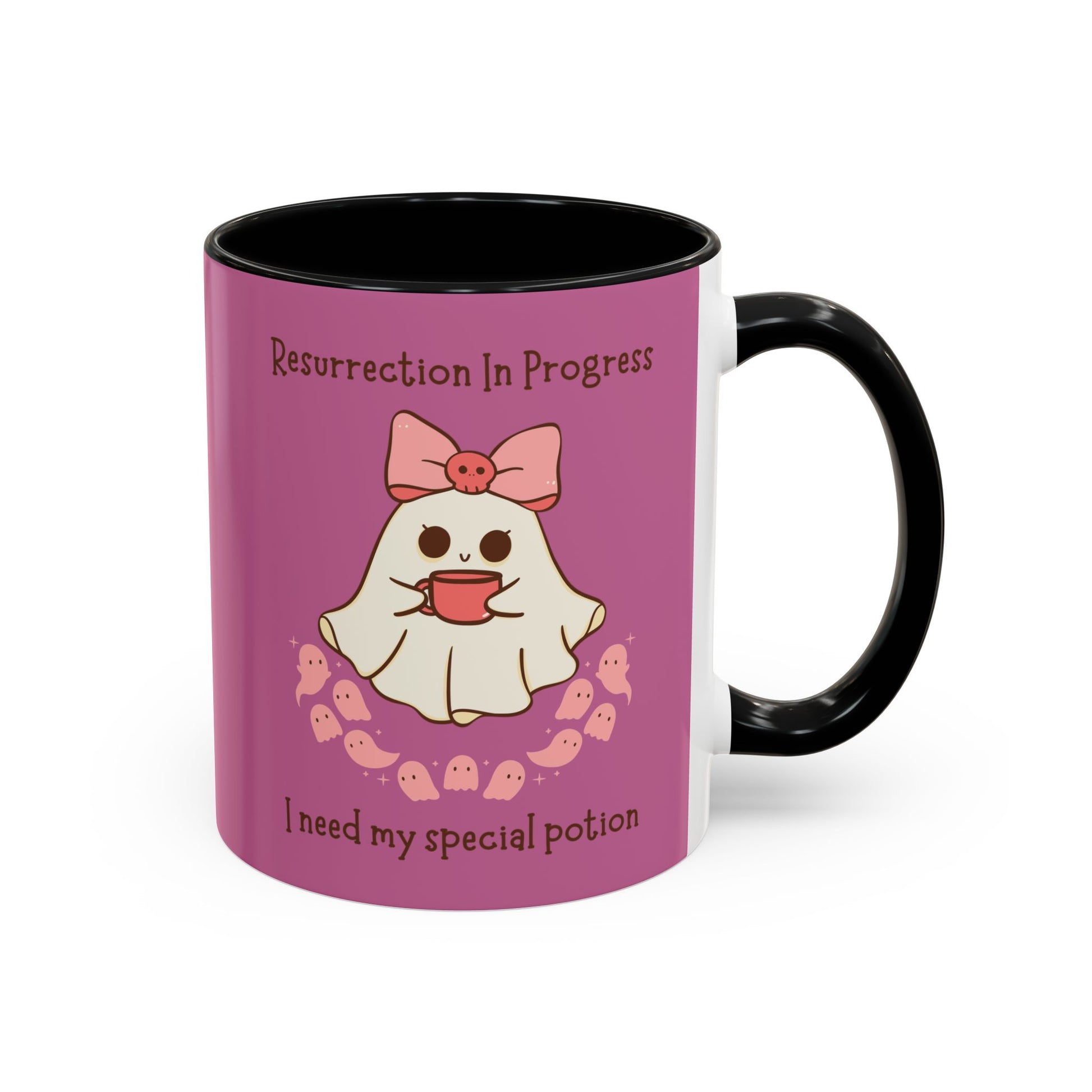 The perfect mug for those waking up from the dead. Meet your next favorite morning companion, the accented ceramic mug. This mug brings the perfect blend of style and functionality to elevate your coffee or tea ritual. This mug offers ample space for your favorite brew. Made with white ceramic and sporting a sleek glossy finish with eye-catching contrast, this mug is a bliss both to use and to look at. The ergonomic C-shaped handle provides a comfortable grip, while the lead and BPA-free construction guarantee peace of mind with every sip.
