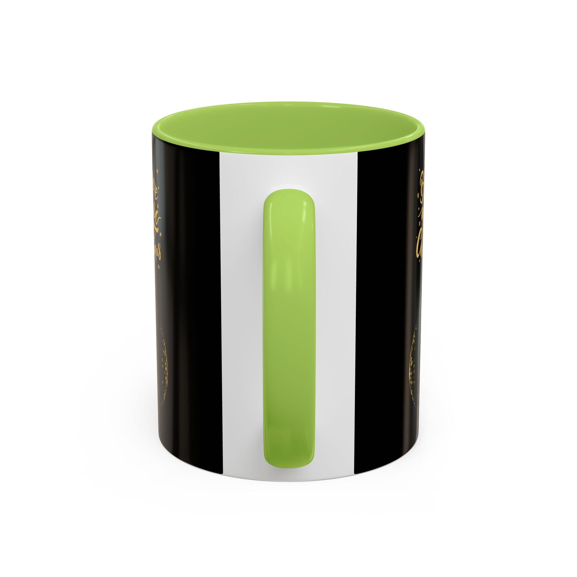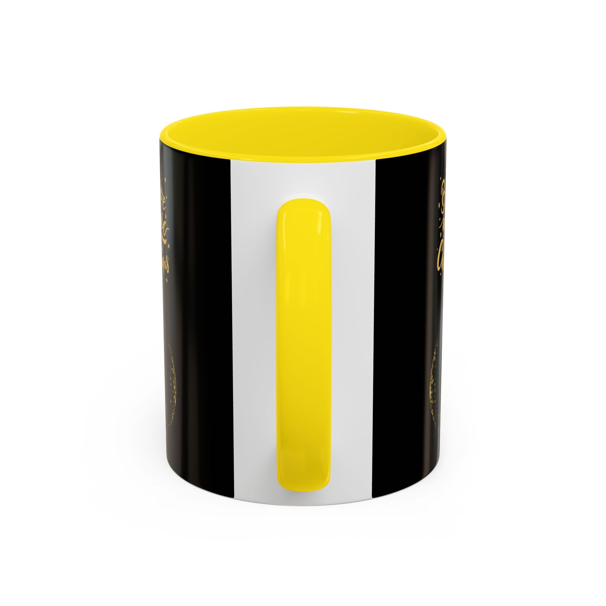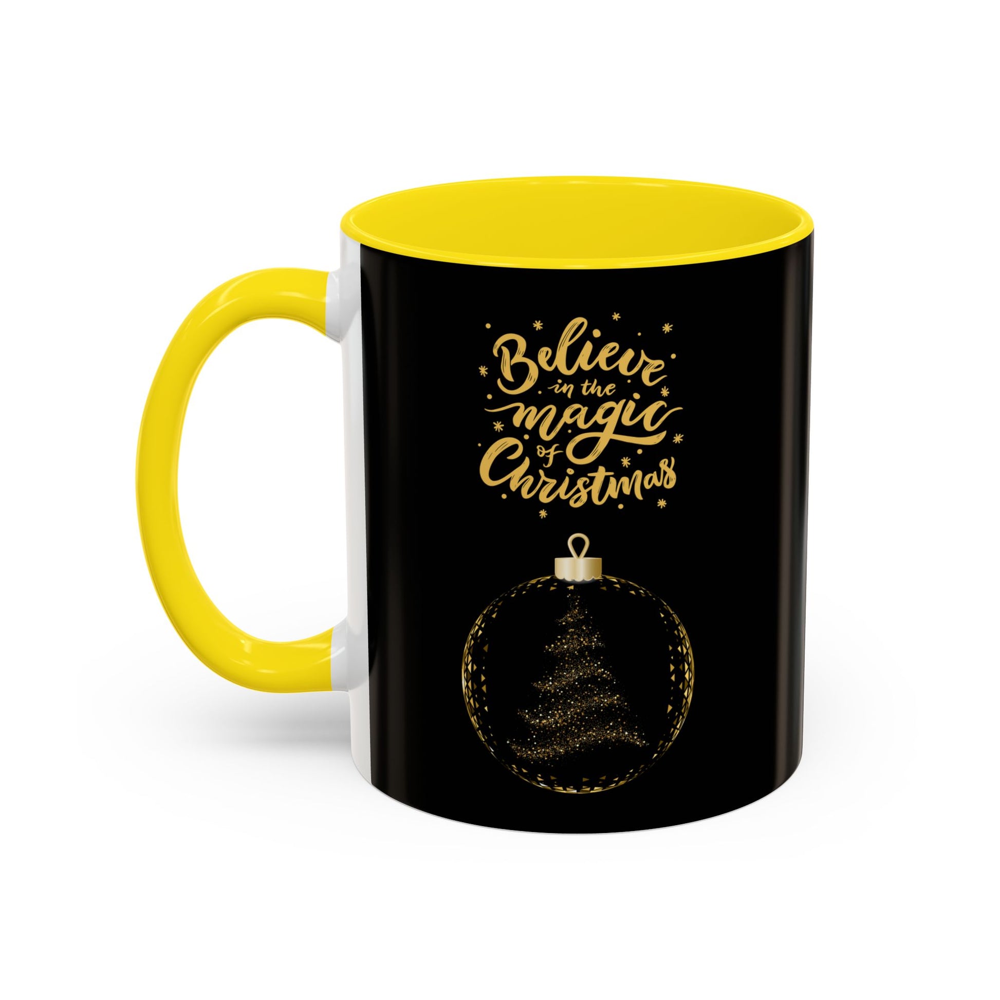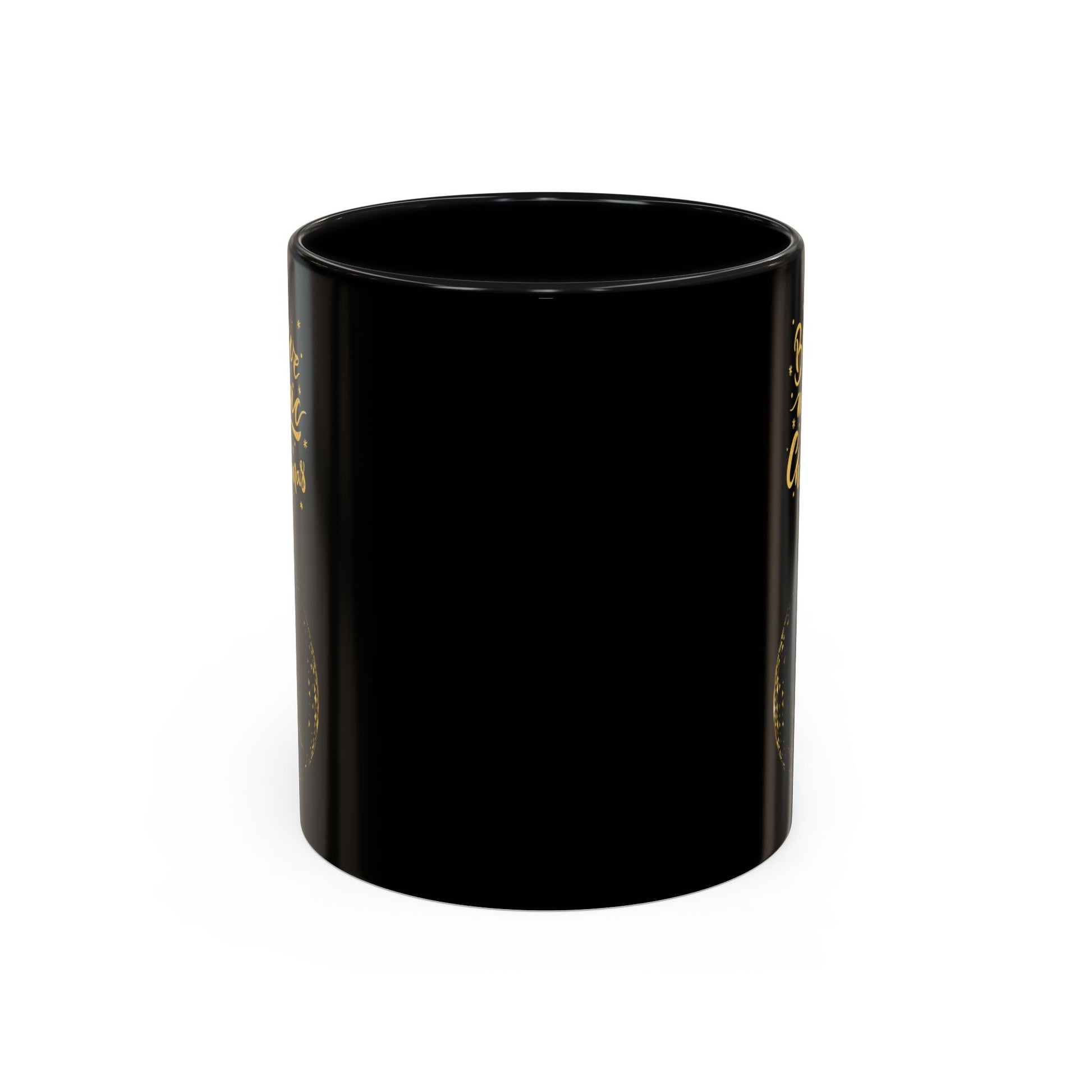 A glossy ceramic mug that brings a little holiday sparkle to everyday moments. The deep black exterior and matching interior/handle color create dramatic contrast for the gold brush-style lettering and ornament illustration. Hold it on chilly mornings as the warm pour fogs the rim and watch the metallic-look design catch the light. It’s the kind of mug that sits on a desk or kitchen counter and quietly lifts the mood—comfortable to grip, safe for reheats, and simple to care for in the dishwasher. A small, joyful ritual for anyone who likes their cocoa with a side of seasonal charm.