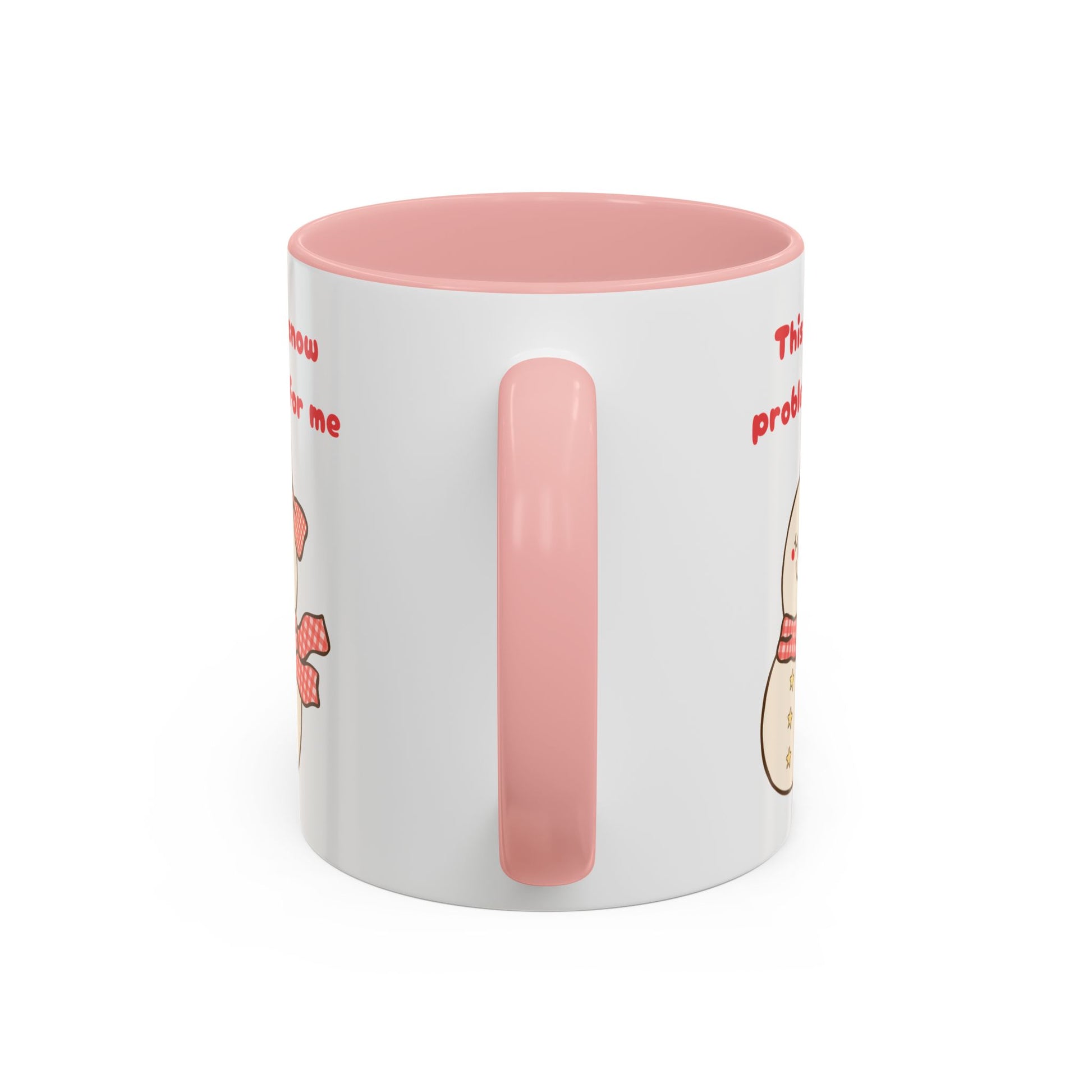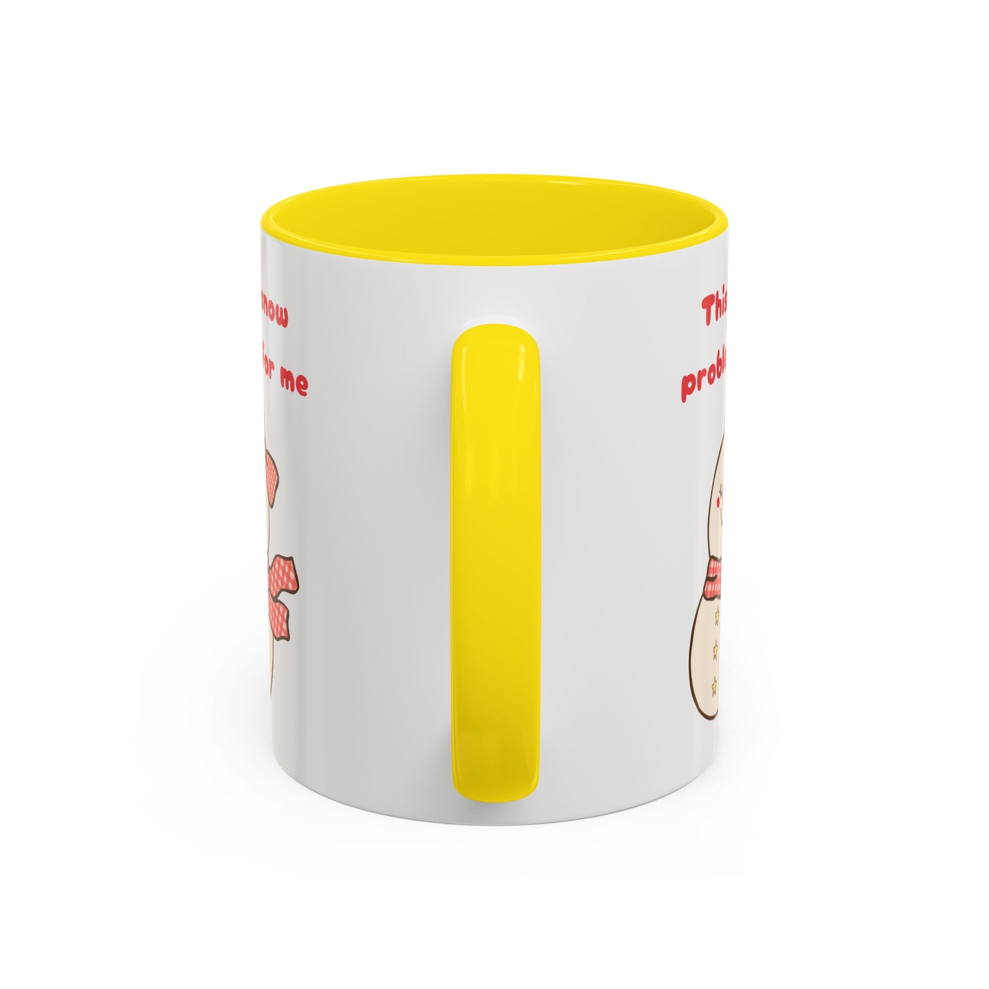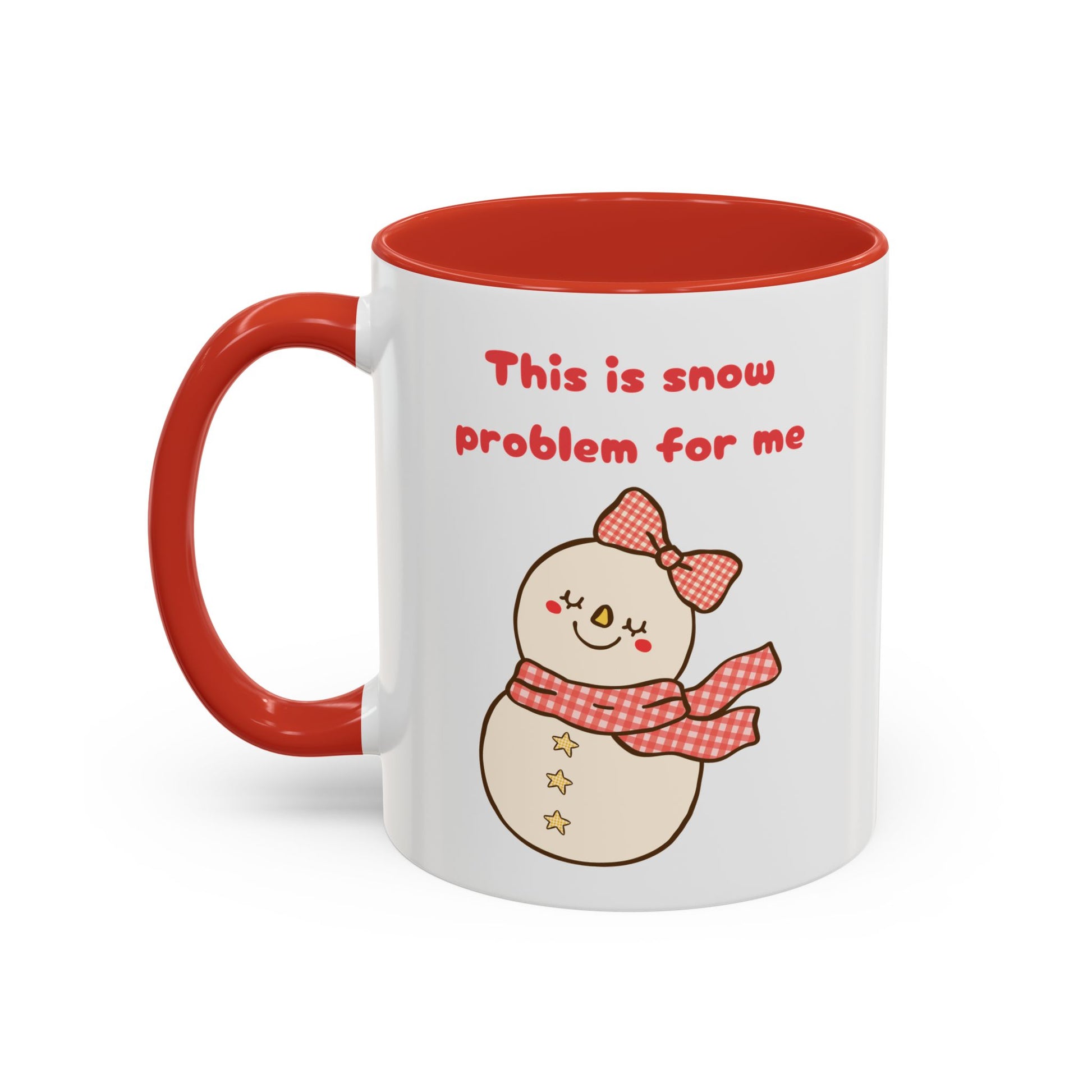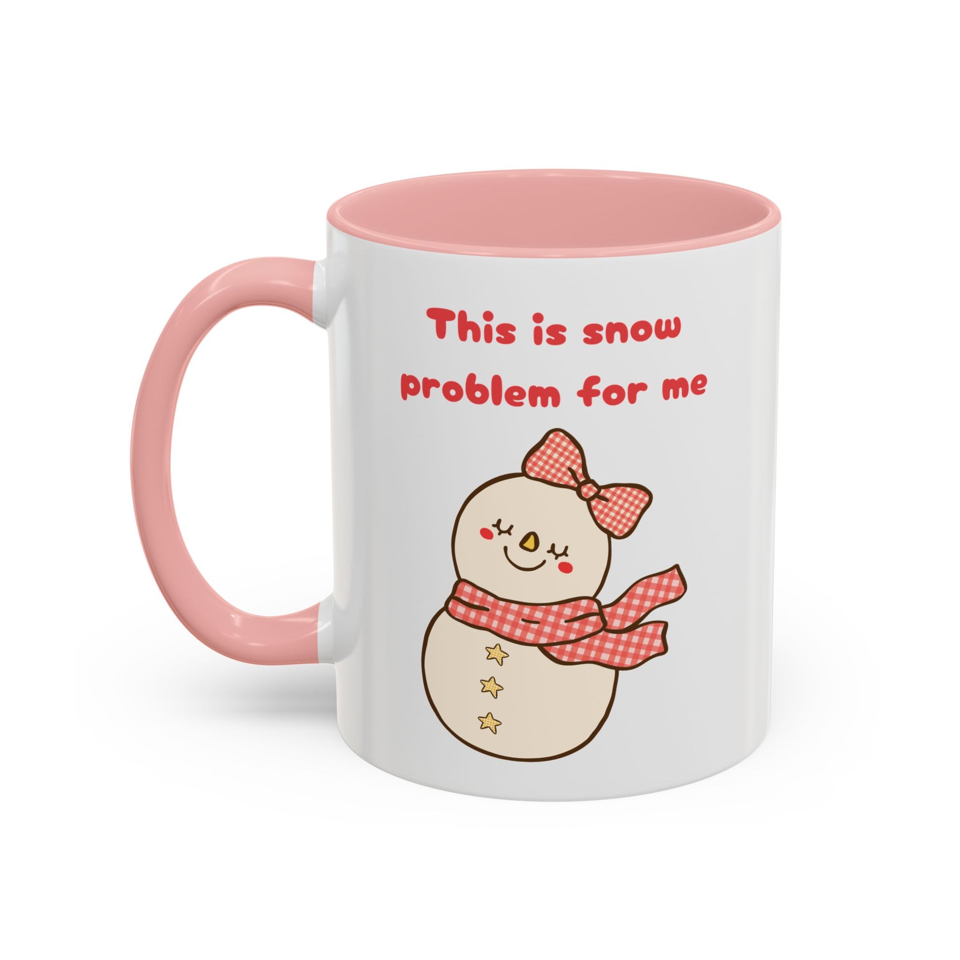 Warm, whimsical, and a little bit cheeky — this colored-accent ceramic mug brings cozy winter charm to everyday coffee or tea. The glossy white exterior showcases a softly illustrated snowperson wearing a patterned scarf and bow, accompanied by the playful line “This is snow problem for me.” A contrasting interior and C-shaped handle add a pop of color and a comfortable grip. Lightweight enough for daily use, yet sturdy and bright enough to make your morning routine feel like a small celebration. Dishwasher and microwave safe, lead- and BPA-free — it lives comfortably in the kitchen, on the desk, or tucked into a holiday mug collection.