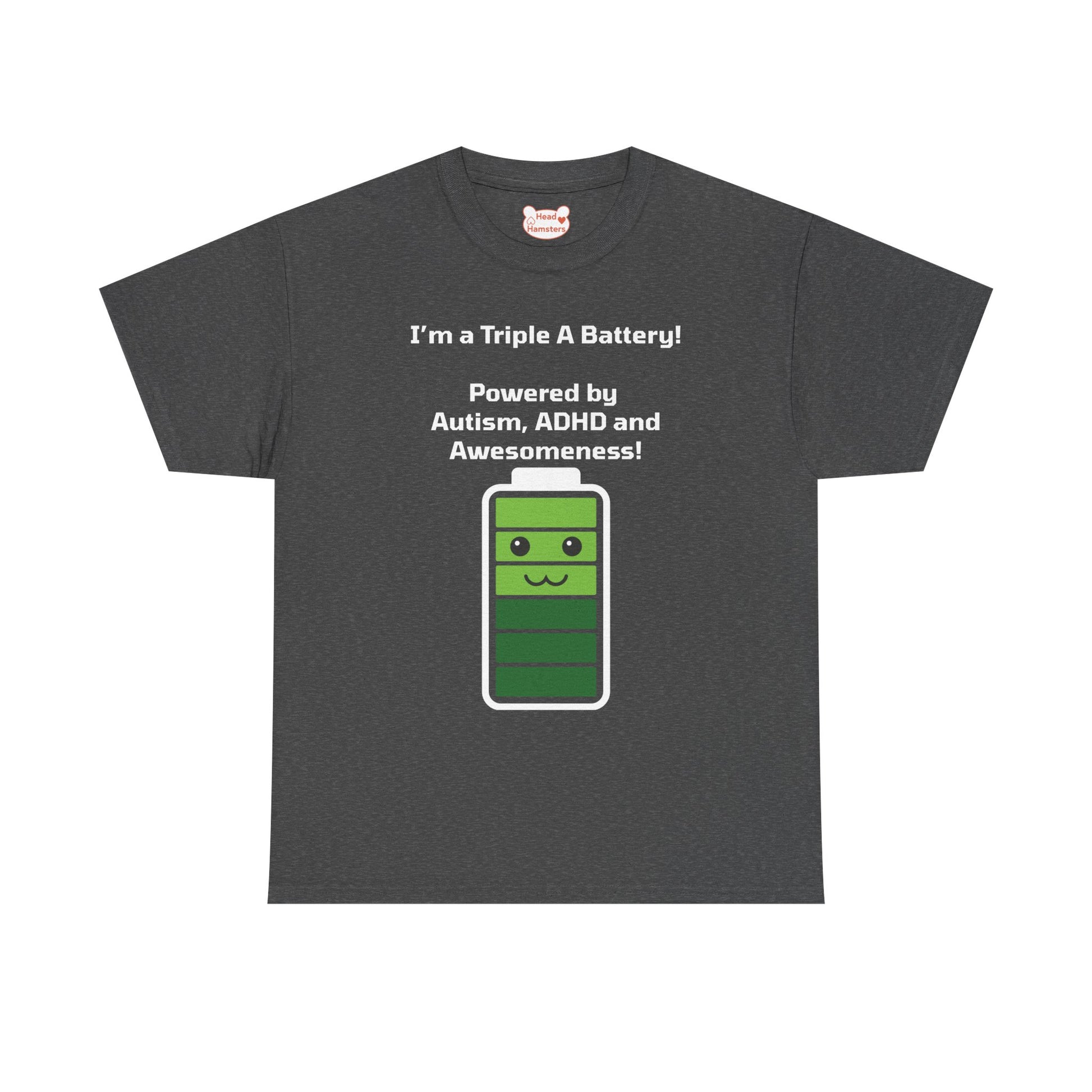 Triple A Battery: Autism, ADHD and Awesomeness - Unisex Cotton T-Shirt